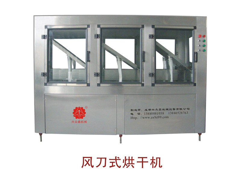 本機(jī)為風(fēng)刀式烘干機(jī),采用******的物理風(fēng)力技術(shù)原理,******避免了傳統(tǒng)烘干機(jī)對(duì)瓶壁的二次污染。該機(jī)適應(yīng)瓶形廣泛,無(wú)毛刷帶來(lái)的污染。主要用于******玻璃瓶在貼標(biāo)或噴碼裝箱前瓶身表面的干燥。利用強(qiáng)風(fēng)把瓶壁上的水珠、水膜,從不同方向強(qiáng)制吹干。適合各類(lèi)灌裝生產(chǎn)線上使用,如:白酒生產(chǎn)線、保健酒、酒生產(chǎn)線等。